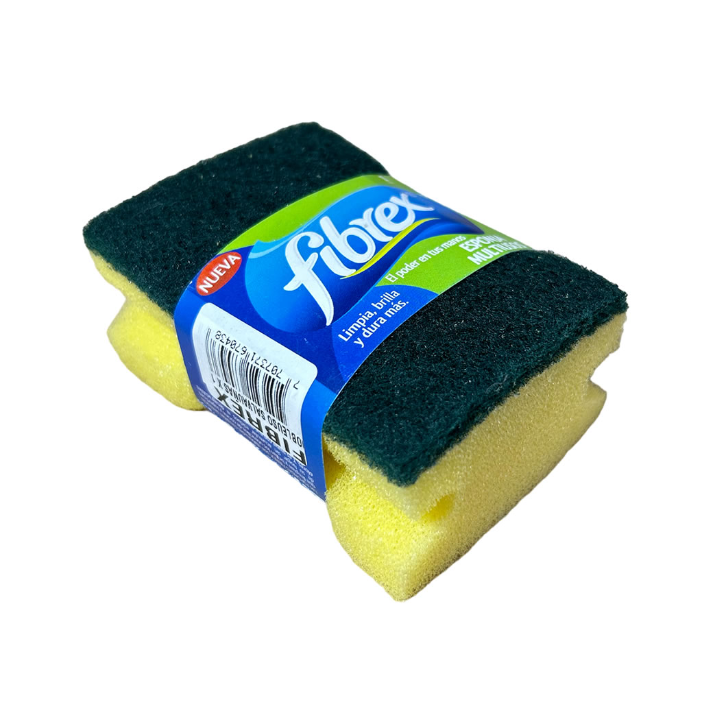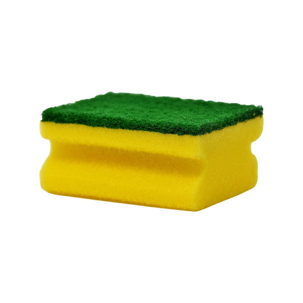 Esponja doble propósito una cara en fibras de alta abrasión para remover la suciedad difícil y en el otro lado en espuma suave de alta absorción para superficies delicadas. Cuenta con un canal en el medio para la protección de las uñas. Combina las propiedades de alta abrasividad con absorción y suavidad, siendo la más versátil en el mercado, ya que se ajusta a múltiples propósitos de limpieza en todo tipo de materiales y lugares a ser limpiados. Esponja de larga durabilidad, no acomula olores ni residuos.
